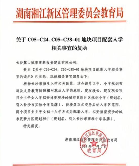 长沙新增5个楼盘可享受配套入读政策。根据湖南湘江新区管理委员会教育局近日发布的文件,建发缦云、建发观云、招商蛇口天青府、金茂璞印梅溪、以及汇方集团地块项目的业主子女,初中入读方式为配套入读。其中,前2个楼盘将配套入读观沙岭城市更新片区规划初中(规划名,引入长沙市南雅中学品牌),后3个楼盘将配套入读木棉中学(暂定名,拟引入师大附中梅溪湖中学品牌)。 根据文件内容,建发缦云、建发观云项目业主子女入学拟安排至观沙岭城市更新片区规划小学(规划名,引入长沙市实验小学品牌),待楼盘正式交房后纳入学区范围。...
